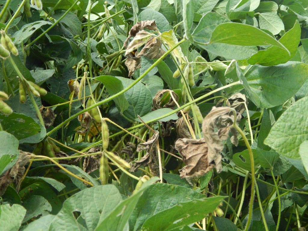 Nombre científico: Sclerotinia sclerotiorum Nombre común: Podredumbre húmeda del tallo en soja (del capítulo en Girasol) Síntomas: este hongo polífago causa podredumbre húmeda de todos los órganos que ataca. Es común observar tallos muertos que se vuelven blanquecinos y quebradizos, con las hojas marchitas y adheridas al tallo. Las lesiones generalmente se observan en la […]