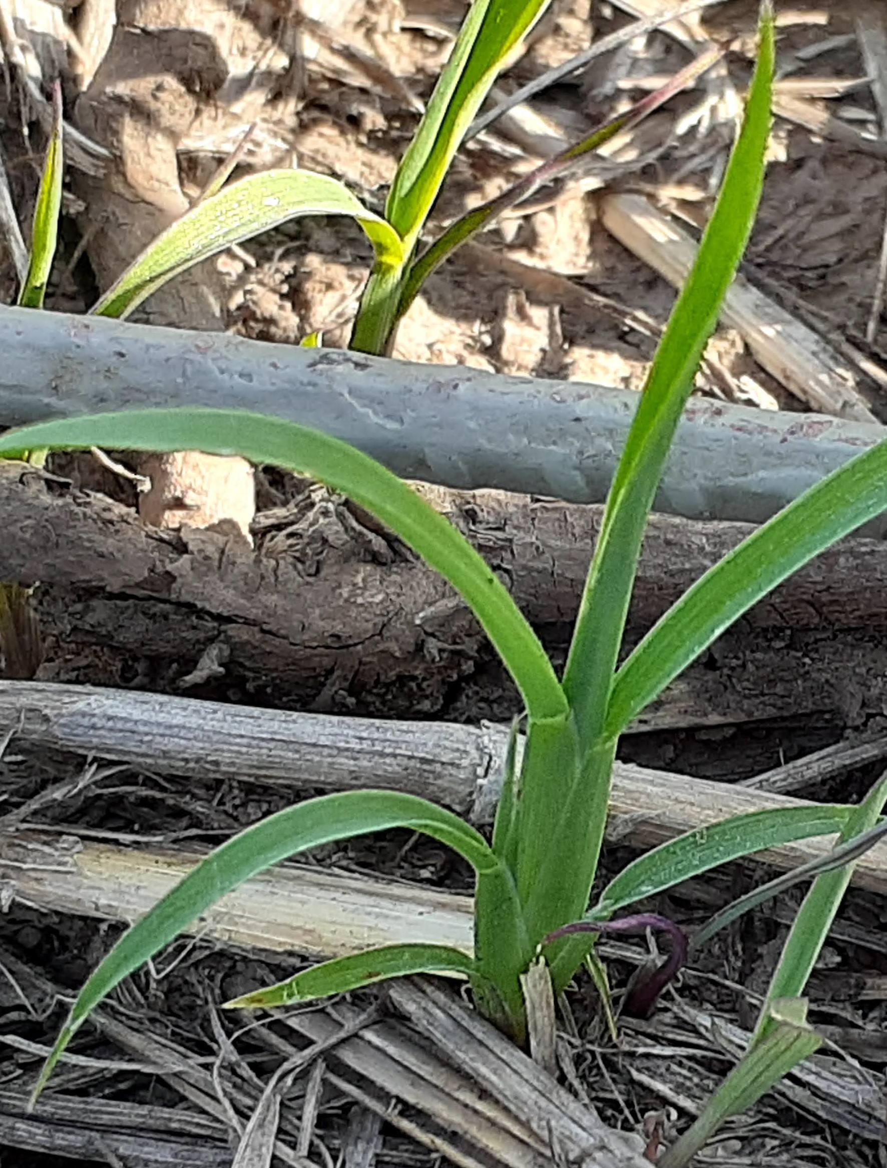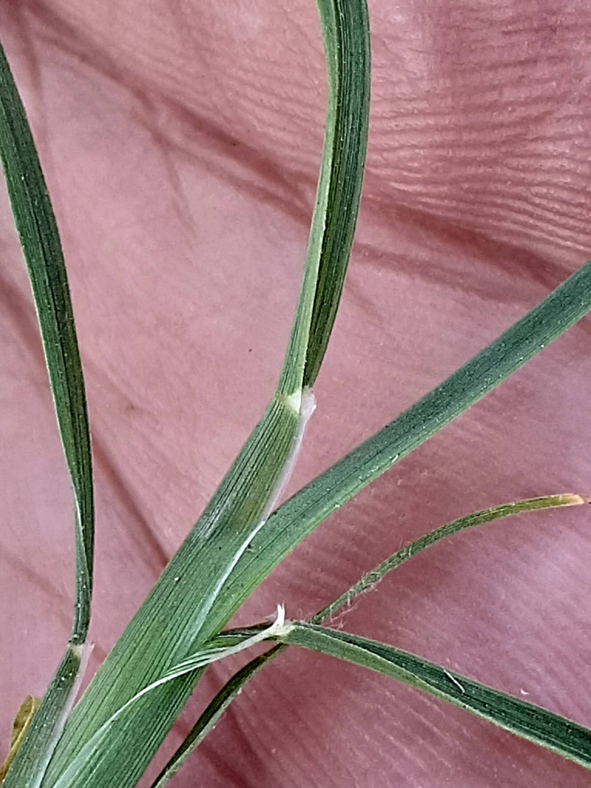 - Hojas: Prefoliación conduplicada, vaina glabra o pilosa en la parte proximal, láminas lineales, planas, pilosas y margen áspero, lígula de 0,4 a 0,8 mm, membranosa-pestañosa, sin aurículas