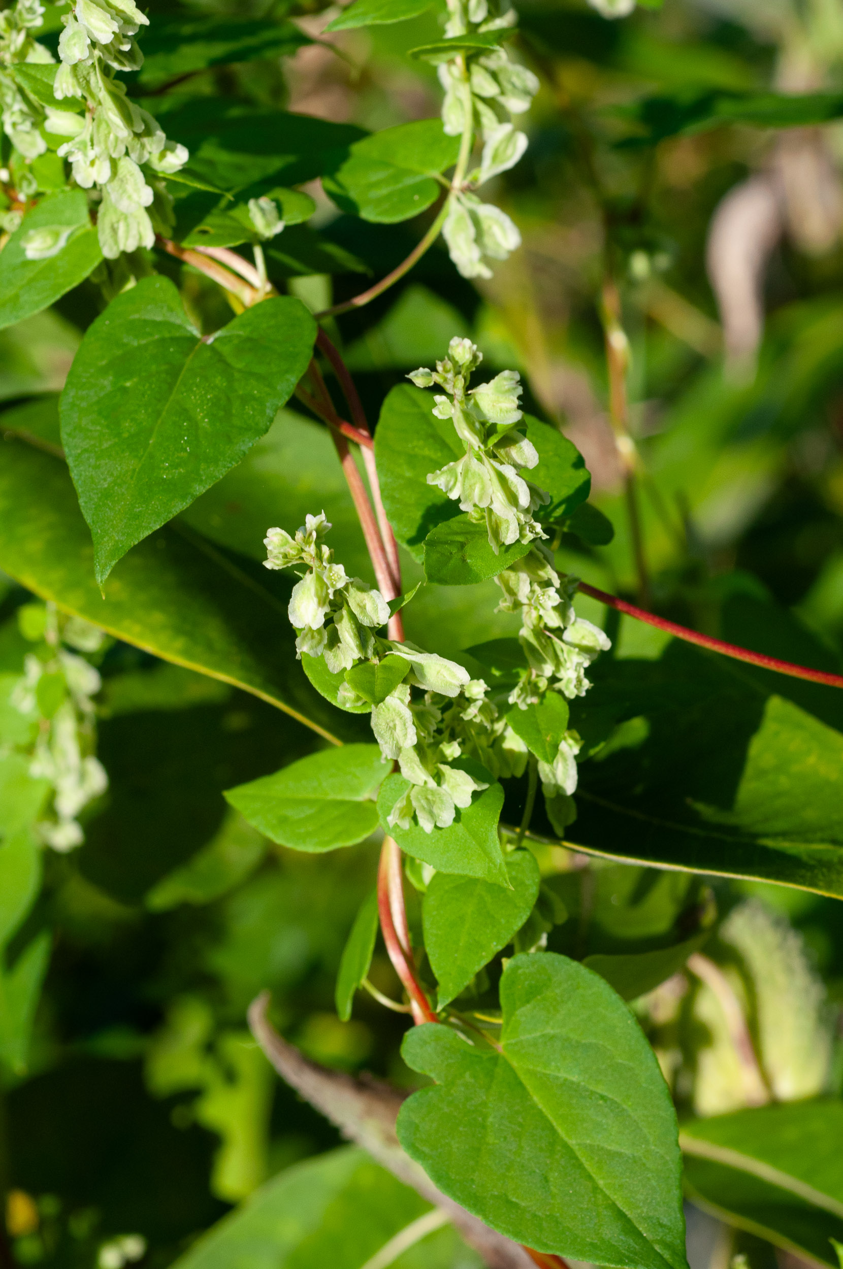 - Flores: Blanquecinas, agrupadas en racimos en las axilas de las hojas y persistentes en el fruto