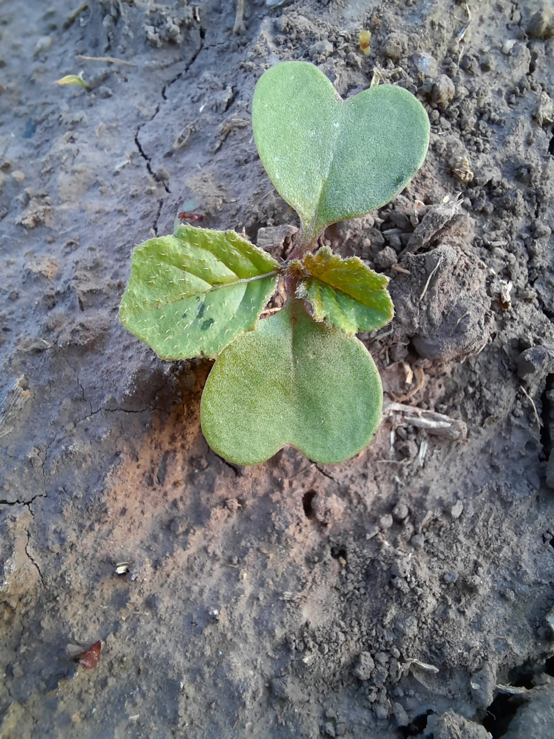 - Cotiledónes: Acorazonados, glabros, con pecíolo corto (menor a 1,5 cm)