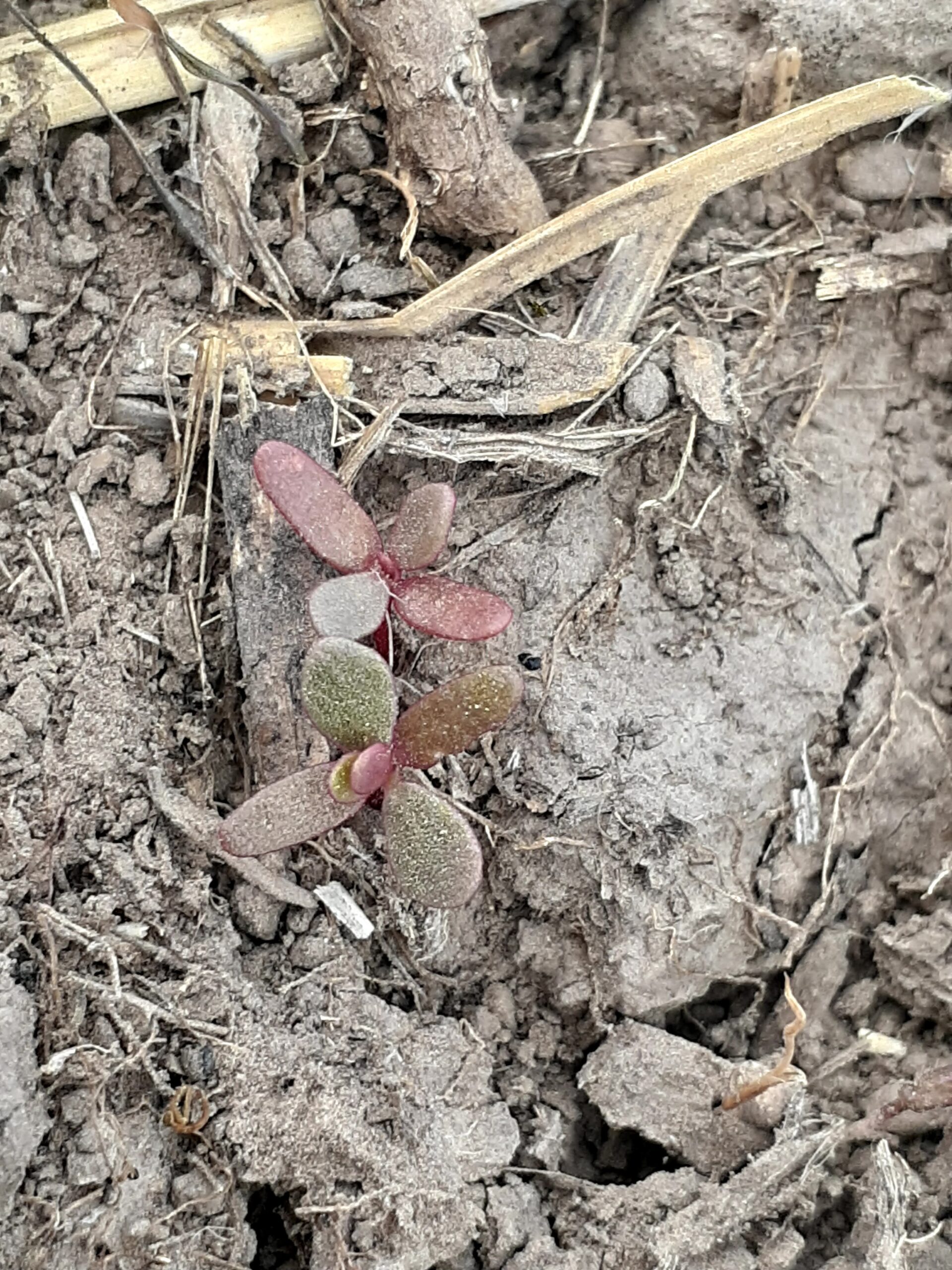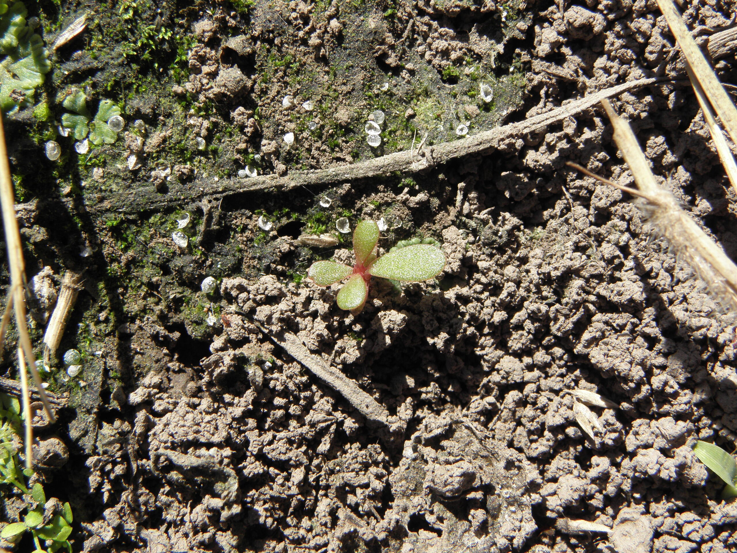- Primeras hojas: Opuestas, ovado-espatuladas, con ápice redondeado y de aspecto craso